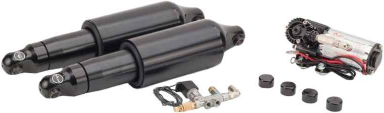 Arnott’s stylish new chrome rebound adjustable FOX® Air Suspension System has been custom designed for Harley-Davidson Touring models to give the rider superior control, additional ride comfort settings and fast ride height adjustability. The FOX shock’s custom valving, designed for your motorcycle, provides you with a safe and comfortable ride. Arnott’s patent-pending kit offers TruAIR technology with a rugged Goodyear air spring bladder and shock damper design, not an air cylinder or air-assisted unit. For added ride comfort this kit includes FOX’s adjustable rebound control dial so you can quickly and easily adjust your shocks’ internal damping characteristics – a feature not found elsewhere in the air suspension market.